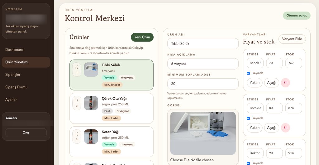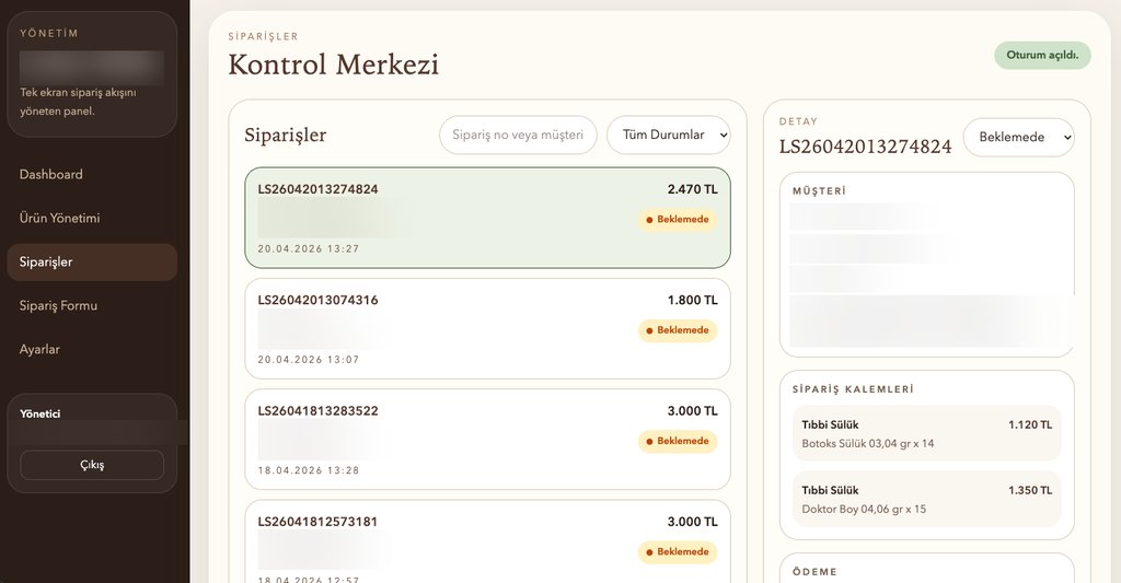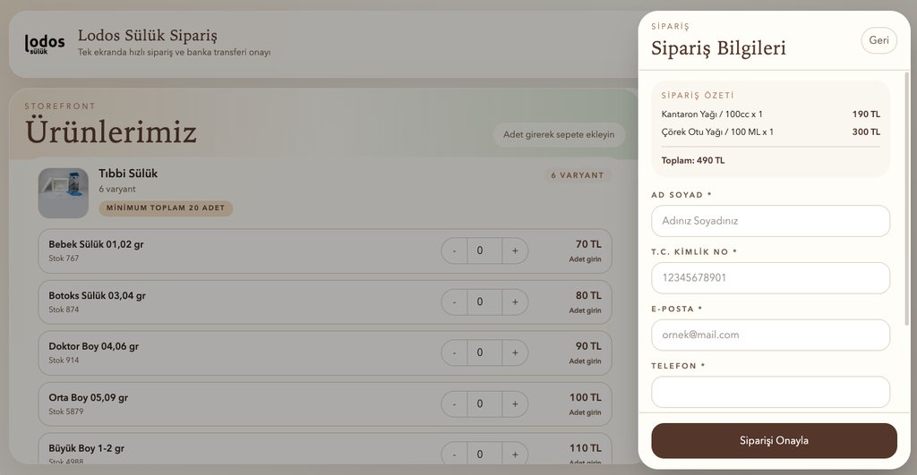 Lodos Sülük için geliştirilen hızlı çevrimiçi sipariş uygulaması. Vanilla PHP API, MySQL ve React/Vite frontend altyapısıyla ürün katalogu, sepet, sipariş akışı ve sipariş/ürün yönetimi için tam kapsamlı admin paneli içeriyor.