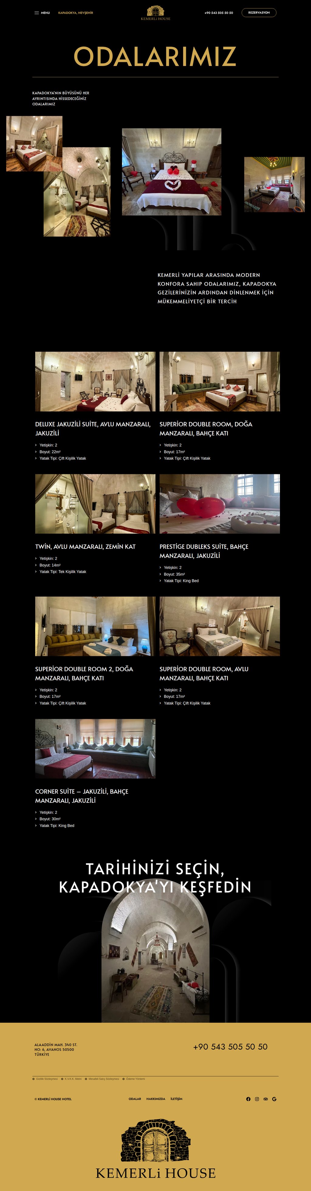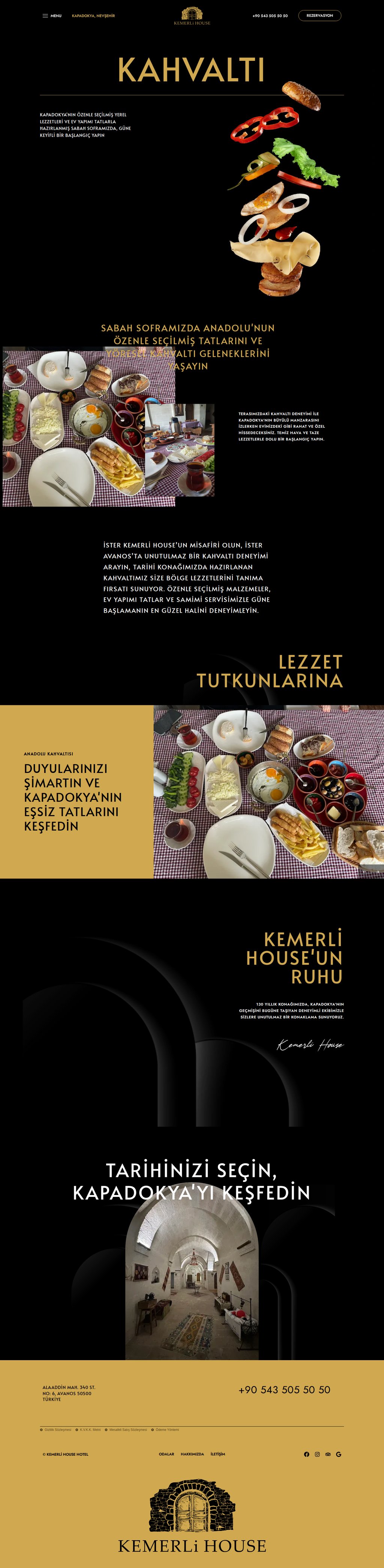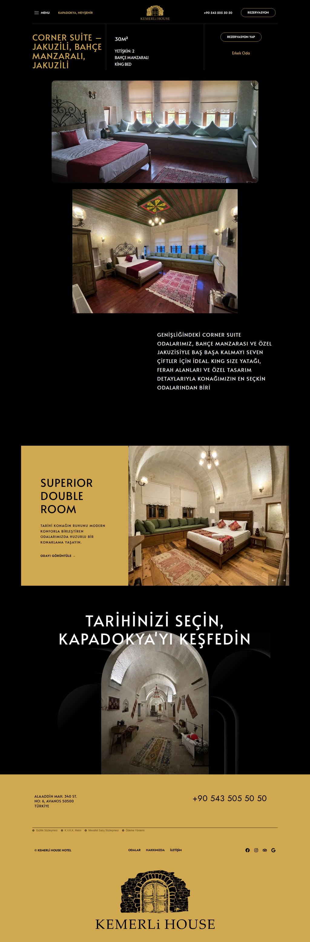 Kapadokya Avanos'ta tarihi bir konakta faaliyet gösteren butik otel. Geleneksel mimarisi ve modern konforu bir arada sunan Kemerli House Hotel, Reseliva rezervasyon sistemiyle entegre çalışıyor. Her oda için ayrı detay sayfası ve çevrimiçi rezervasyon entegrasyonu içeren iki dilli yapı.